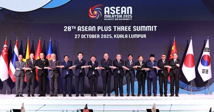 이재명 대통령도 아세안+3 정상회의 모두발언에서 “오늘 우리는 보호무역주의, 글로벌 공급망 재편 등 새로운 지경학적 위기에 봉착해 있다”며 “아세안+3 협력에 박차를 가해야 한다”고 밝혔다.
