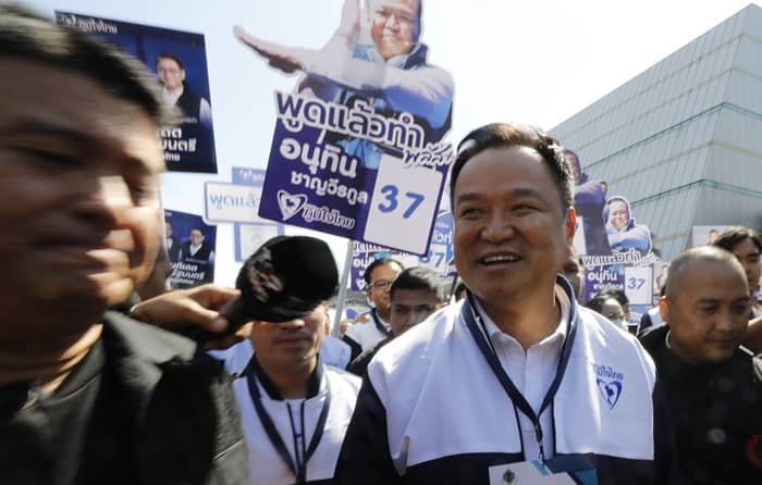아누틴 찬위라꾼(59) 현 총리가 이끄는 보수 정당 품짜이타이당은 아누틴 총리와 시하삭 푸앙껫깨우 외교부 장관을 총리 후보로 내세웠다.