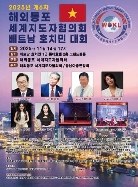 해외동포세계지도자협의회(이사장 김명찬)가 오는 14일 오후 5시 베트남 호찌민 롯데호텔에서 ‘제6차 해외동포 세계지도자협의회 베트남 호찌민대회’를 연다.