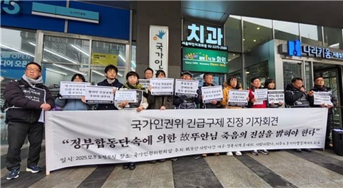 ‘고(故) 뚜안 사망사건 대응을 위한 대구경북지역 대책위원회’와 이주노동자차별철폐네트워크 등은 11일 중구 인권위 앞에서 기자회견을 열고 인권위에 직권 조사와 긴급구제 조치 등을 촉구했다.