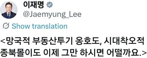 한편 이 대통령은 서울 강남구 개포동에서 시세보다 약 4억 원 낮춘 급매물이 등장했다는 기사도 함께 공유하며, 시장 변화에 대한 메시지를 간접적으로 전했다.