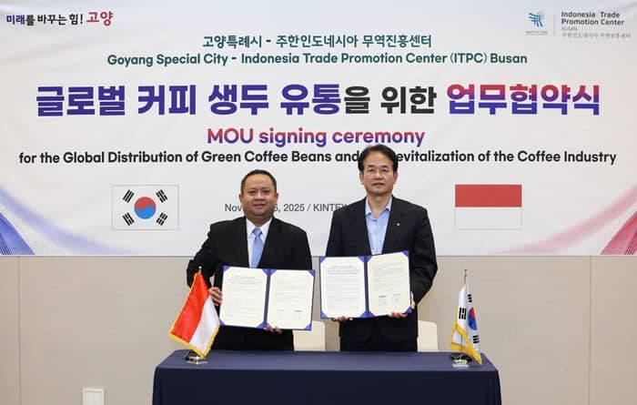 경기 고양시는 주한인도네시아 무역진흥센터(ITPC 부산)와 ‘글로벌 커피 생두 유통 협력 협약’을 체결했다고 7일 밝혔다.