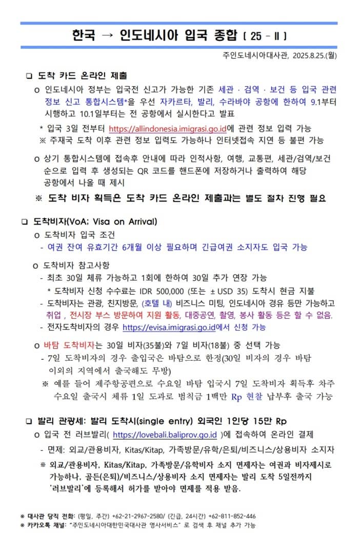[대사관] 한국-인도네시아 입국 종합 [25-Ⅱ]