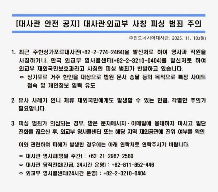 대사관·외교부 사칭 피싱 범죄 주의