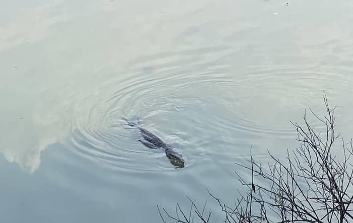 악어는 쯩까렝 하천 배수로에 설치된 부유식 쓰레기 차단 구조물 인근에서 주로 목격되고 있다.