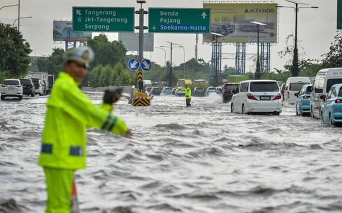 수카르노-하타 국제공항으로 향하는 스디얏모 유료도로(Tol Sedyatmo) 일부 구간이 침수돼 정체가 이어지고 있다.