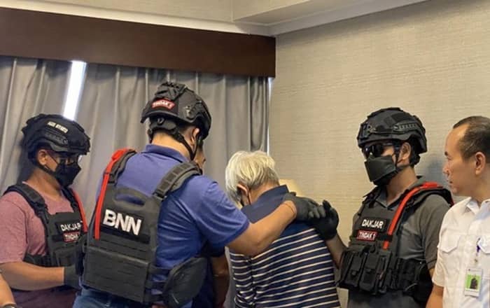 BNN은 말레이시아에서 입국한 TKG가 수까르노-하따 국제공항에서 대형 캐리어를 들고 입국하는 장면을 포착해 일주일간 추적했다. TKG는 남 자카르타 스띠아부디 지역의 아파트로 이동해 이미 현장에 머물고 있던 MK와 합류했다. 이후 BNN과 세관 당국은 해당 아파트를 급습해 두 사람을 체포했다.