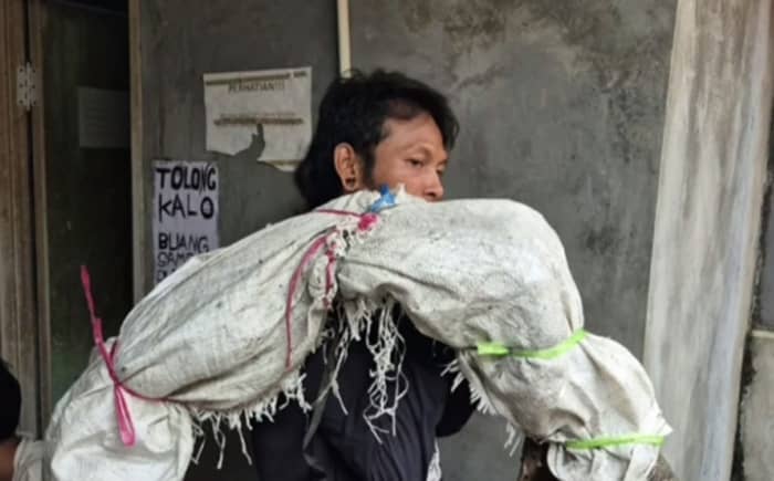 서부 자카르타에서 한 남성이 시신으로 보이는 물체를 어깨에 메고 이동하는 영상이 사회관계망서비스(SNS)에 퍼져 논란이 됐다. / 인스타그램 @wargajakarta 캡처