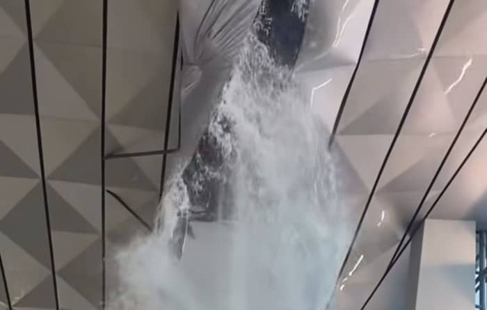 소셜미디어(SNS)에 올라온 영상에는 천장이 무너지면서 고여 있던 빗물이 출국장 바닥으로 쏟아지는 모습이 담겼다. 놀란 승객들이 대피하면서 현장은 아수라장이 됐다.