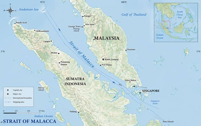 말라카해협은 전 세계 해상 원유 수송량의 약 30%가 지나는 핵심 통로로, 한국을 포함한 동아시아 국가들의 원유 수입 상당량이 이곳을 통과한다. 해협의 최소 폭은 약 2.7㎞에 불과해 약 39㎞인 호르무즈해협보다 훨씬 좁은 대표적 ‘에너지 병목지점’으로 꼽힌다.