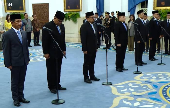 27일 콤파스 등에 따르면 프라보워 수비안토 대통령은 이날 자카르타 대통령궁에서 개각을 발표하고 신임 인사들에 대한 취임 선서를 진행했다. 취임식에는 기브란 라카부밍 라카(Gibran Rakabuming Raka) 부통령도 참석했다.