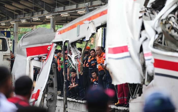 28일 자카르타글로브에 따르면 전날 오후 8시 50분께 동브까시역(Stasiun Bekasi Timur)에서 자카르타-찌까랑( Jakarta–Cikarang) 구간을 운행하던 통근열차(KRL)와 동자바주 수라바야로 향하던 장거리 열차 아르고 브로모 앙그렉(Argo Bromo Anggrek)이 충돌하는 사고가 발생했다.